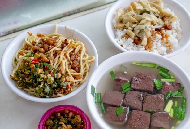- 排隊三巨頭: 清水排骨酥麵、菱角酥、金樹鳳梨冰/肉圓。