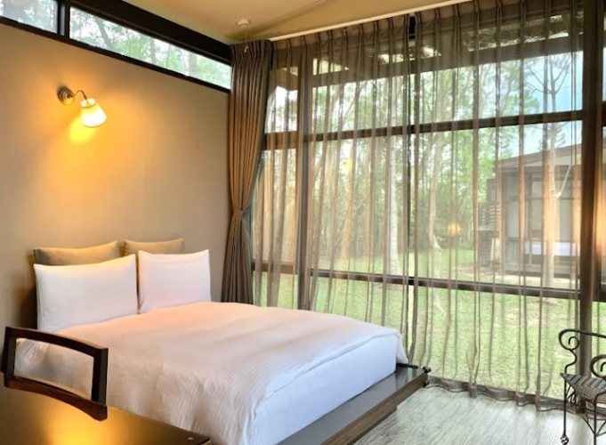 - 森林景觀房: 這是我這次住的房型。大面積的落地窗將整片綠意框了進來,躺在床上就像睡在森林裡。早晨是被陽光和鳥鳴溫柔喚醒的,那種感覺真的很難用言語形容。房內空間寬敞,簡約的木質調裝潢讓人感覺放鬆。衛浴是乾濕分離,水壓很足,熱水也夠快。