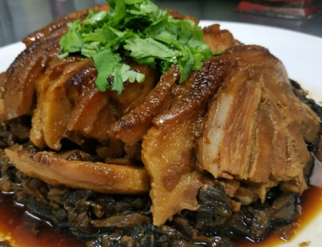 介紹: 這家藏身在中壢新明市場旁的老店,是我一位客家朋友帶路的私房愛店。外觀真的超級不起眼,第一次去還差點錯過。但走進去,撲鼻而來的油蔥香和醃篤鮮湯的香氣,立刻讓你感覺「來對了!」。這裡專做道地客家風味,口味偏鹹香濃郁,「重口味好友」的天堂。他們的客家小炒鑊氣十足,魷魚乾香、豆乾入味、豬肉片帶點焦邊,超級下飯;薑絲大腸處理得非常乾淨,酸脆爽口;梅乾扣肉更是招牌,梅乾菜香撲鼻,五花肉燉到入口即化,肥而不膩,扒三碗飯都沒問題!不過分量不算大盤,價格屬中上,適合精緻品嚐。是體驗 中壢好吃 客家菜的穩妥選擇。(家庭聚餐、長輩宴客很適合)