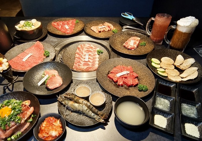 • 肉質與種類: 新鮮度是基本,肉的花色、厚度、醃漬口味有沒有特色?牛豬雞羊海鮮,選擇夠不夠多?有沒有讓人驚豔的品項?(例如:厚切牛舌、Prime等級牛肉、伊比利豬...)