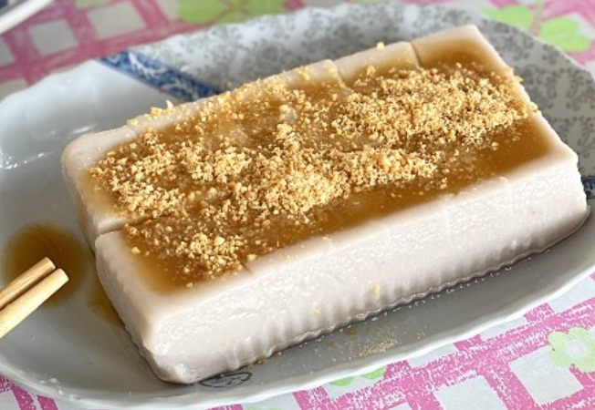 - 花生豆腐: 美濃特色甜品。口感介於豆腐和麻糬之間,非常綿密軟嫩,帶著濃鬱的花生香氣,淋上黑糖漿。冰冰涼涼的很好吃!