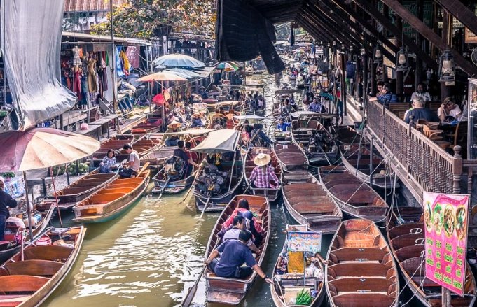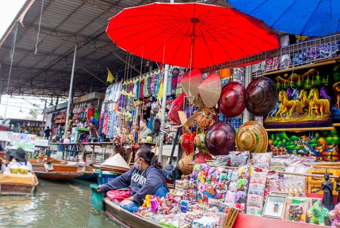 - 水道船遊(核心體驗,坐船穿梭攤販間,買小吃如芒果糯米飯)
